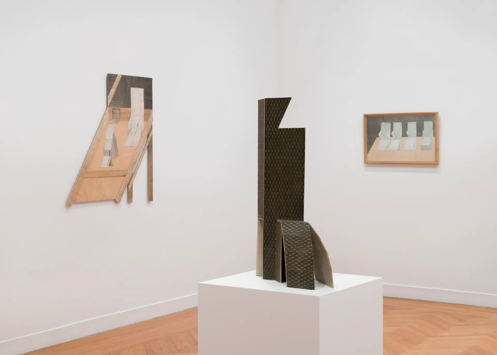 This exhibition, Simpson’s first solo institutional show in New York, presents thirty works from 1976 to 2022 across two galleries. One gallery features her drawings and early collagraph prints, while the other includes sculptures that span her evolution from cardboard works and clothing-based sculptures to recent architectural forms, all unified by her rigorous yet intuitive approach to transformation.