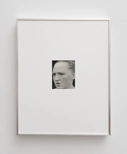 Five Kilometers, Contis’s first major film, follows the faces of three girls as they run a 5K cross-country race through the Appalachian landscape. It is composed of three single takes, each one beginning with a shot from a starter pistol and ending after the runner completes her course. Each runner occupies a separate time—morning, midday, evening—but, in the gallery, the runners seem to move in unison, the sound of their breathing and footfalls filling the space. Phases, a sequence of twenty-four black-and-white photographs, accompanies the film as a parallel motion study. Contis made these intimate portraits as the runners approached or crossed the finish line. Both works explore running as ecstatic movement and performance—they are portraits of endurance that knot the anxiety and desire often projected onto young women. In them, one witnesses the way bodies moving through time become, for Contis, a way of telling time, their motion determining the shape and structure of her work.